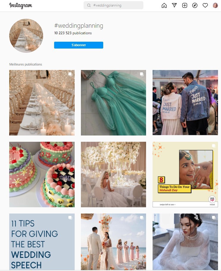 Image credit : Instagram screenshot of the 10 223 523 results available on the hastag #weddingplanning