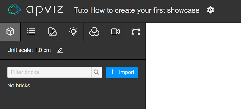 A Showcase: is a space where you can create your 3D configurator for your product. It will contain your 3D models imported by bricks and all the configurations you will define in the following steps.