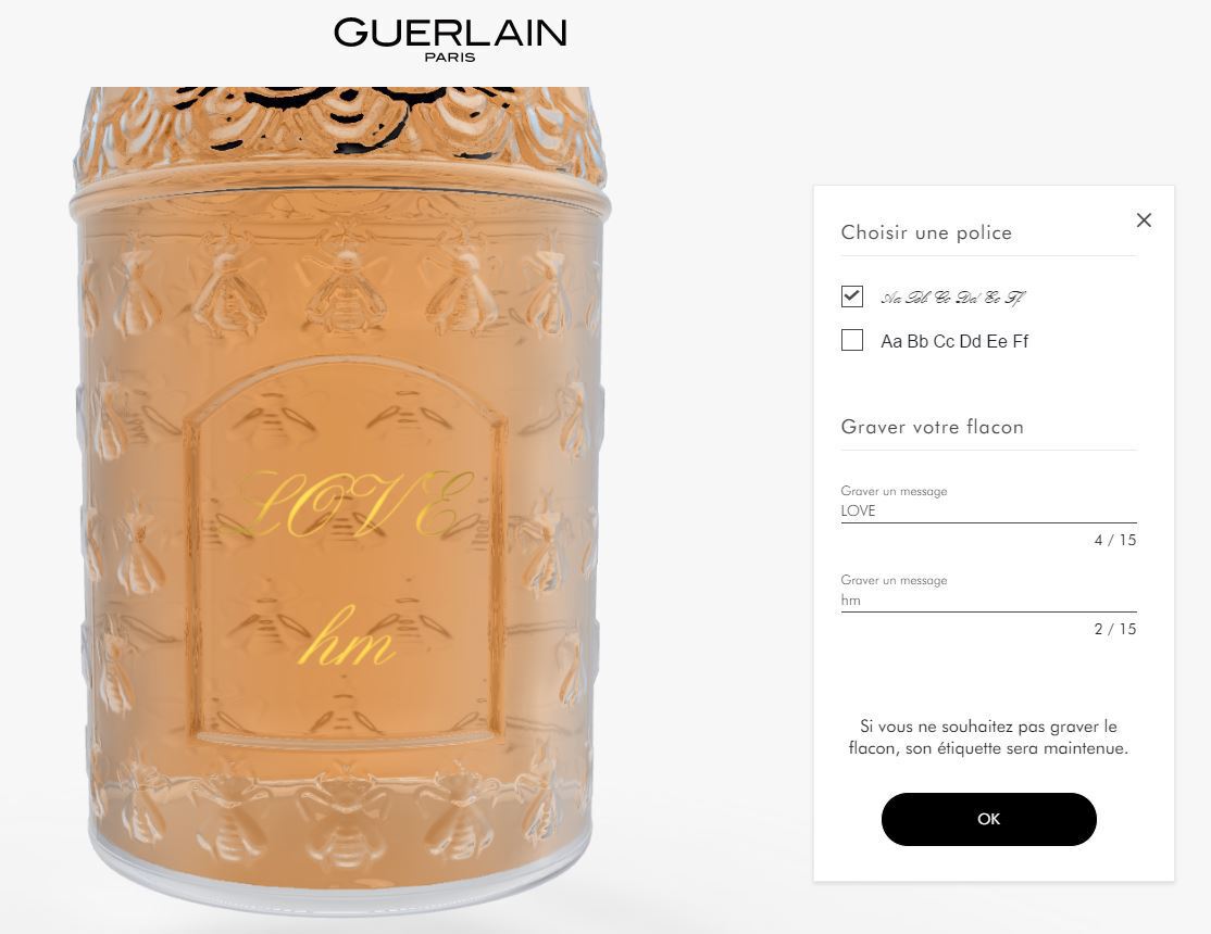 Moreover, adding engraving is even simpler. One of the projects for which we implemented such a tool is Guerlain. This French luxury brand enables website users to personalize perfume bottles and add engraving to it, for an even more personal touch. The idea turned out so successful that the tactic has become iconic for the brand.