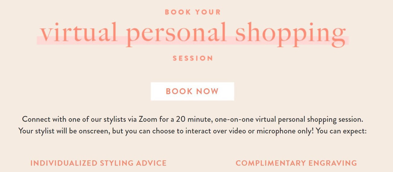 A relevant example that adjusted to the pandemic context is Kendra Scott. The company implemented an omnichannel strategy to reboot sales, techniques including curbside pick-up, buy-online-pick-up-in-store (BOPIS), and ship from store options. Moreover, the brand also offered a virtual try-on feature on its website, enabling consumers to see how jewelry looks on them.